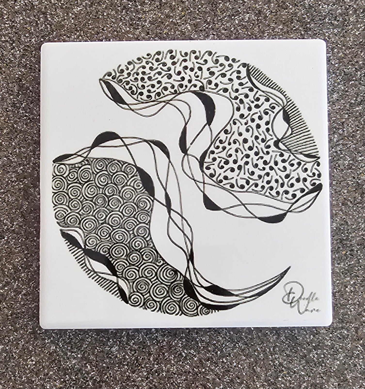 Doodle Design White Cermaic Coaster - Stormy Night