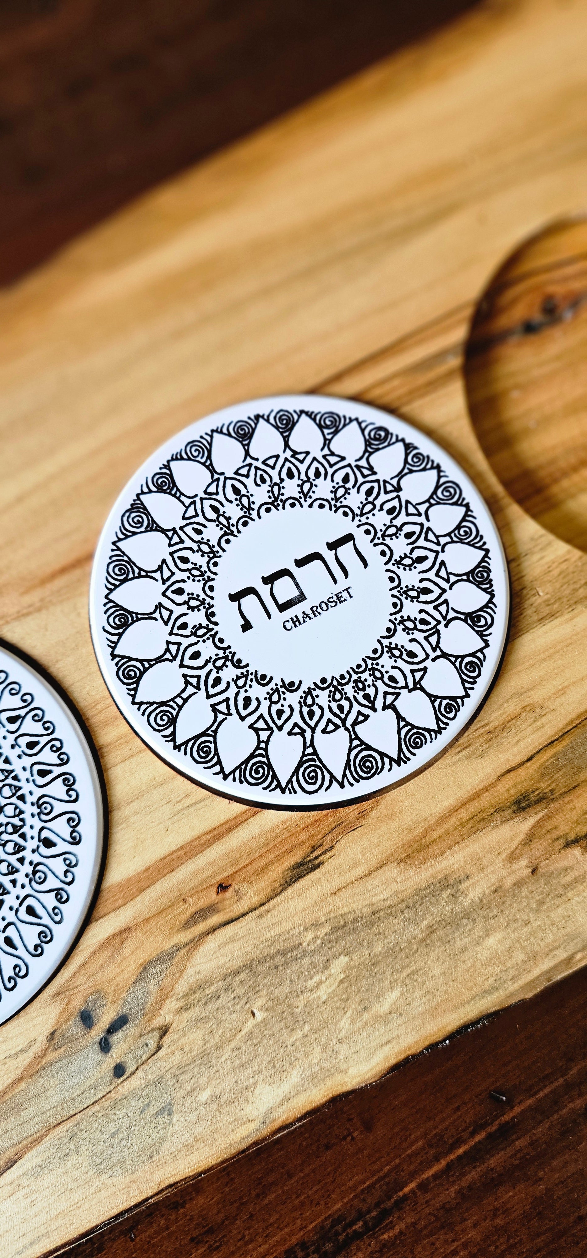 We offer a set of 6 generic tiles sold separately, so that you can turn your Seder Plate to an everyday use serving board.