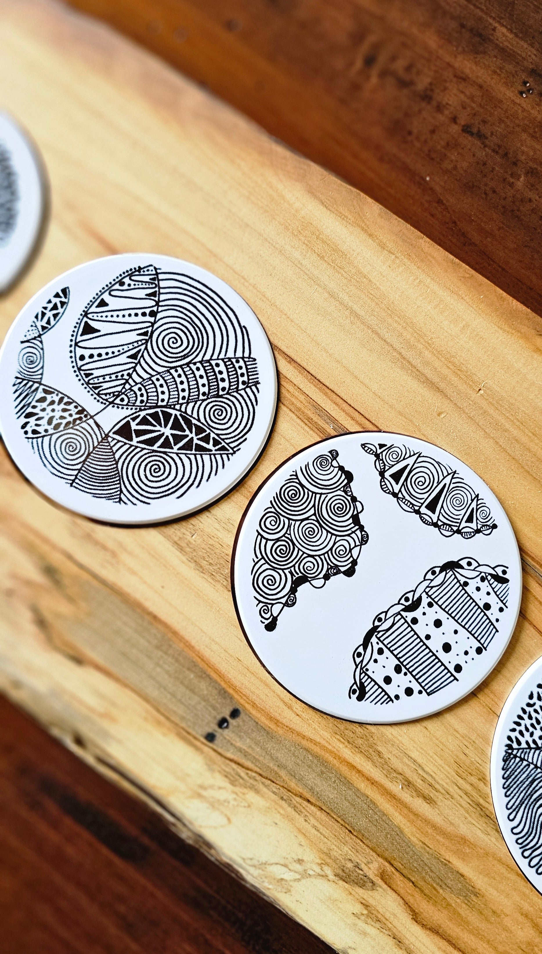 Includes 6 round ceramic tiles that can easily be removed to be cleaned (tiles are dishwasher safe)